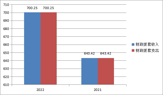 2022年财政拨款收、支总计分别为700.25万元、700.25万元。与2021年相比,财政拨款收、支总计各增加56.83万元、56.83万元,增长8.83%。主要变动原因是疫情防控及基本公共卫生经费增加。