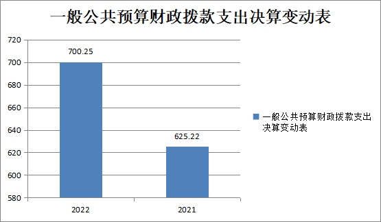 2022年一般公共预算财政拨款支出700.25万元,占本年支出合计的49.65%。与2021年相比,一般公共预算财政拨款支出增加75.03万元,增长12%。主要变动原因是疫情防控及基本公共卫生经费增加。