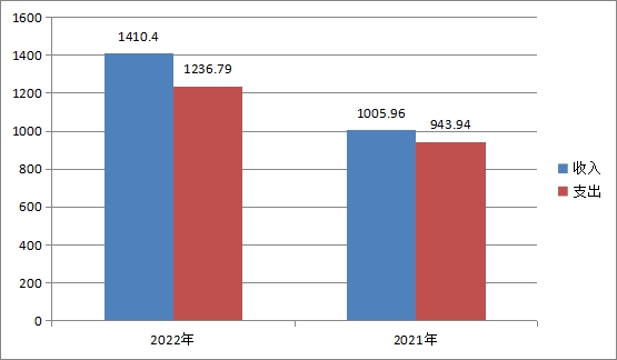 2022年度收、支总计分别为1410.4万元、1236.79万元。与2021年相比,收、支总计各增加404.44万元、292.85万元,增长40.2%、31.02%。主要变动原因是收入增加是改善就医环境,临床业务人员进行业务学习培训,提高医疗技术水平;支出增加是业务收入增加,相应成本也增加。