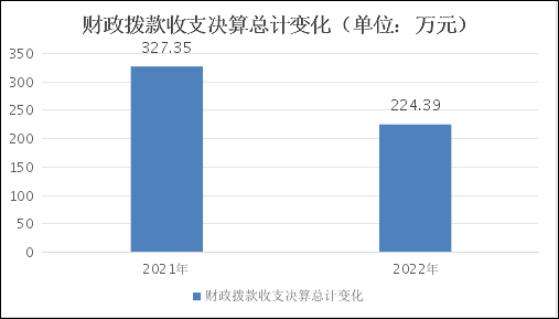 2022年财政拨款收、支总计224.39万元。与2021年相比,财政拨款收、支总计各减少102.96万元,下降31.45%。主要变动原因是维修费用减少。