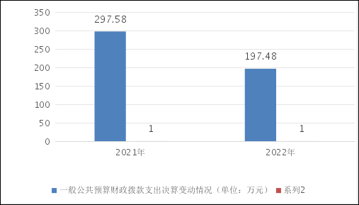 2022年一般公共预算财政拨款支出197.48万元,占本年支出合计的88.01%。与2021年相比,一般公共预算财政拨款支出减少100.1万元,下降33.64%。主要变动原因是维修费用减少。