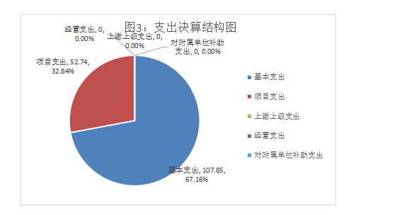 2022年本年支出合计160.58万元,其中:基本支出107.85万元,占67.16%;项目支出52.74万元,占32.84%;上缴上级支出0万元,占0%;经营支出0万元,占0%;对附属单位补助支出0万元,占0%。