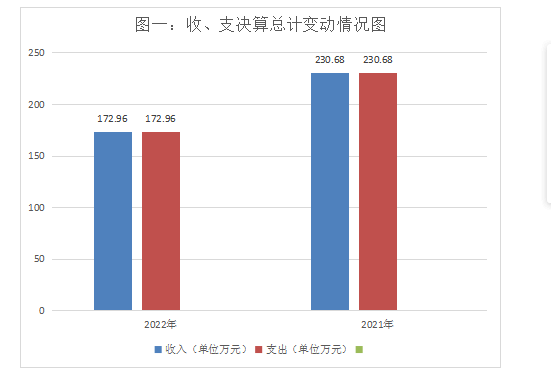 2022年度收入172.96万元,支总172.96万元。与2020年相比,收入总计各减少57.72万元,支出总计减少57.72万元,减少25.02%。主要变动原因是虽然财政拨款收入增加,但事业收入因医院撤乡合并大幅减少,顾总收入减少。疫情防控支出增加。