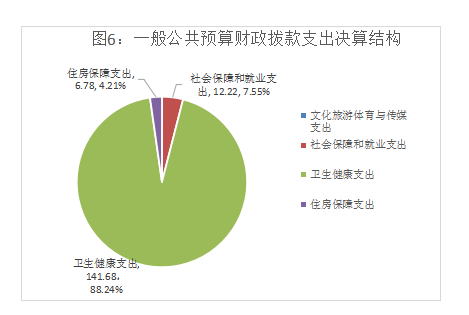 2022年一般公共预算财政拨款支出160.58万元,主要用于以下方面:一般公共服务(类)支出0万元,占0%;教育支出(类)0万元,占0%;科学技术(类)支出0万元,占0%;文化旅游体育与传媒(类)支出0万元,占0%;社会保障和就业(类)支出12.12万元,占7.55%;卫生健康支出141.68万元,占88.24%;住房保障支出6.78万元,占4.21%。