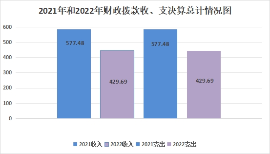 2022年财政拨款收、支总计429.69万元。与2021年相比,财政拨款收、支总计各减少147.69万元,下降25.59%。主要变动原因是学生人数减少及学校校园环境的改善和学校校园文化的建设投入减少。