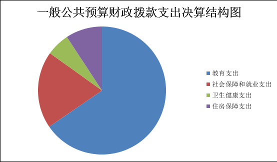 2022年一般公共预算财政拨款支出1065.98万元,主要用于以下方面:一般公共服务(类)支出0万元,占0%;教育支出(类)697.59万元,占65.44%;科学技术(类)支出0万元,占0%;文化旅游体育与传媒(类)支出0万元,占0%;社会保障和就业(类)支出207.33万元,占19.45%;卫生健康支出62.59万元,占5.87%;住房保障支出98.46万元,占9.24%。
