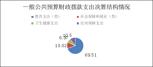 2022年一般公共预算财政拨款支出1317.26万元,主要用于以下方面:一般公共服务(类)支出0万元,占0%;教育支出(类)915.69万元,占69.51%;科学技术(类)支出0万元,占0%;文化旅游体育与传媒(类)支出0万元,占0%;社会保障和就业(类)支出171.51万元,占13.02%;卫生健康支出91.84万元,占6.97%;住房保障支出138.22万元,占10.5%。