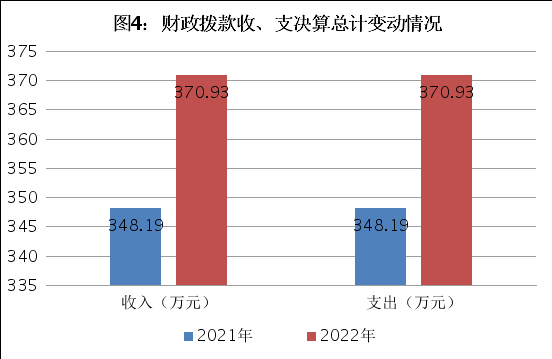 2022年财政拨款收、支总计370.93万元。与2021年相比,财政拨款收、支总计各增加22.74万元,上升6.53%。主要变动原因是教职工人数增加。