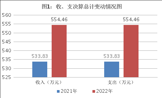 2022年度收、支总计554.46万元。与2021年相比,收、支总计各减少20.63万元,上升3.86%。主要变动原因是教职工人数增加。