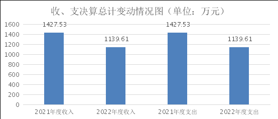 2022年度收、支总计1139.61万元。与2021年相比,收、支总计各减少287.92万元,下降20.17%。主要变动原因是教职工人数减少及学校校园环境的改善和学校校园文化的建设投入减少。