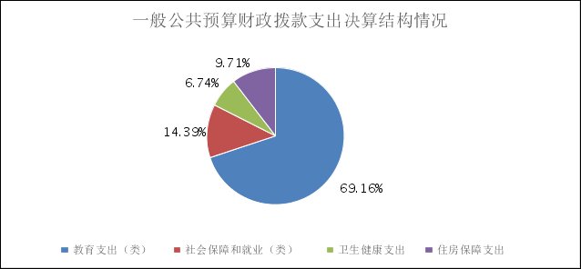 2022年一般公共预算财政拨款支出1139.61万元,主要用于以下方面:一般公共服务(类)支出0万元,占0%;教育支出(类)788.16万元,占69.16%;科学技术(类)支出0万元,占0%;文化旅游体育与传媒(类)支出0万元,占0%;社会保障和就业(类)支出163.97万元,占14.39%;卫生健康支出76.85万元,占6.74%;住房保障支出110.63万元,占9.71%。