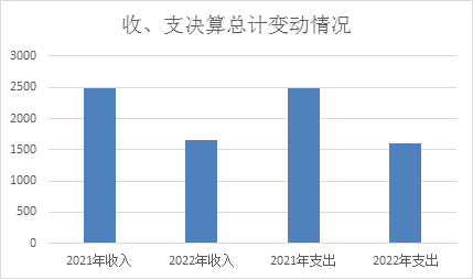 2022年度收、支总计1660.00万元。与2021年相比,收、支总计各减少822.46万元,下降33.13%。主要变动原因是教职工人数减少及学校校园环境的改善和学校校园文化的建设投入减少。