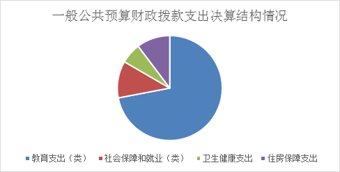 2022年一般公共预算财政拨款支出1660.00万元,主要用于以下方面:一般公共服务(类)支出0万元,占0%;教育支出(类)1194.95万元,占71.98%;科学技术(类)支出0万元,占0%;文化旅游体育与传媒(类)支出0万元,占0%;社会保障和就业(类)支出189.00万元,占11.39%;卫生健康支出105.03万元,占6.33%;住房保障支出171.01万元,占10.30%。