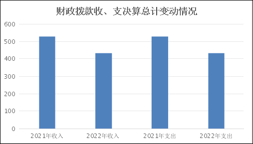 2022年度收、支总计433.78万元。与2021年相比,收、支总计各减少92.75万元,下降17.62%。主要变动原因是教职工人数减少及学校校园环境的改善和学校校园文化的建设投入减少。