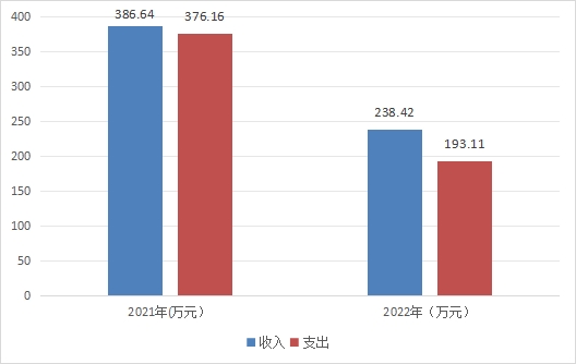 2022年度收入总计238.42万元,总支出193.11万元。与2021年相比,收入总计减少148.22万元,下降38.34%。主要变动原因是财政补助收入和事业收入减少,2022年无其他收入;支出总计减少183.05万元,下降48.66%,主要变化原因是人员经费及卫生健康支出减少。