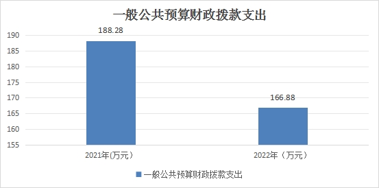 2022年一般公共预算财政拨款支出166.88万元,占本年支出合计的63.19%。与2021年相比,一般公共预算财政拨款支出减少21.4万元,下降11.37%。主要变动原因是疫情防控财政投入减少。