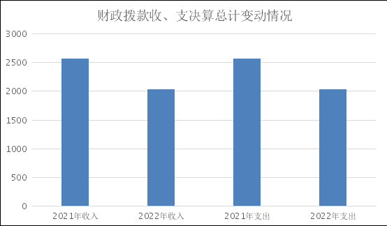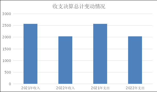 2022年度收、支总计2030.84万元。与2021年(2564.14)相比,收、支总计各减少533.3万元,下降20.80%。主要变动原因是教职工人数减少。