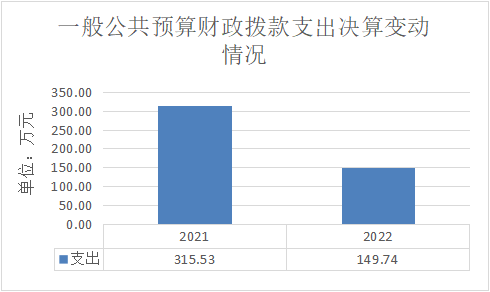 2022年一般公共预算财政拨款支出149.74万元,占本年支出合计的100%。与2021年相比,一般公共预算财政拨款支出减少165.79万元,下降52.54%。主要变动原因是宣传氛围营造项目未开展。