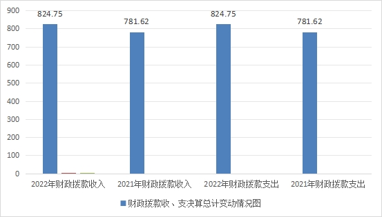 2022年财政拨款收、支总计824.75万元。与2021年相比,财政拨款收、支总计各增加43.13万元,增长5.51%。主要变动原因是疫情原因,财政拨款增加。
