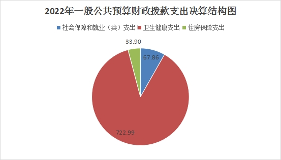 2022年一般公共预算财政拨款支出824.75万元,主要用于以下方面:一般公共服务(类)支出0万元,占0%;教育支出(类)0万元,占0%;科学技术(类)支出0万元,占0%;文化旅游体育与传媒(类)支出0万元,占0%;社会保障和就业(类)支出67.86万元,占8.23%;卫生健康支出722.99万元,占87.66%;住房保障支出33.90万元,占4.11%。