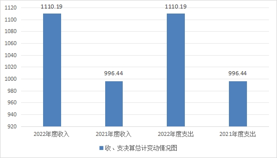 2022年度收、支总计1110.19万元。与2021年相比,收、支总计增加113.75万元,增长11.41%。主要变动原因是疫情原因,财政拨款增加。