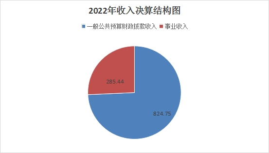 2022年本年收入合计1110.19万元,其中:一般公共预算财政拨款收入824.75万元,占74.28%;政府性基金预算财政拨款收入0万元,占0%;国有资本经营预算财政拨款收入0万元,占0%;上级补助收入0万元,占0%;事业收入285.44万元,占25.72%;经营收入0万元,占0%;附属单位上缴收入0万元,占0%;其他收入0万元,占0%。