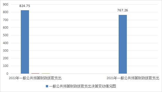 2022年一般公共预算财政拨款支出824.75万元,占本年支出合计的74.28%。与2021年相比,一般公共预算财政拨款支出增加57.49万元,增长7.49%。主要变动原因是疫情原因,财政拨款增加。