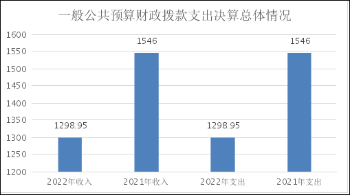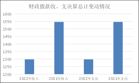 2022年财政拨款收、支总计1298.95万元。与2021年相比,财政拨款收、支总计各减少247.05万元,下降15.98%。主要变动原因是教职工人数减少及学校校园环境的改善和学校校园文化的建设投入减少。