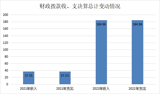2022年财政拨款收、支总计184.96万元。与2021年相比,财政拨款收、支总计各增加147.41万元,增加393%。主要变动原因是2021年未招生,2022年春季开园,学生和教师人数增加,财政拨款和事业收入增加。