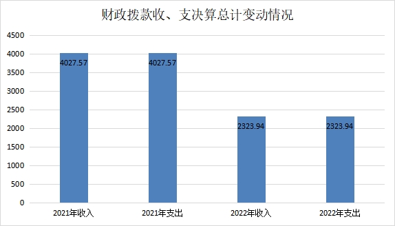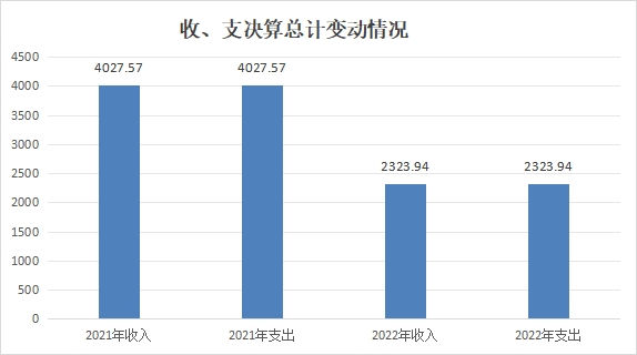 2022年度收、支总计2323.94万元。与2021年相比,收、支总计各减少1703.63万元,减少42.3%。主要变动原因是财政拨款减少。