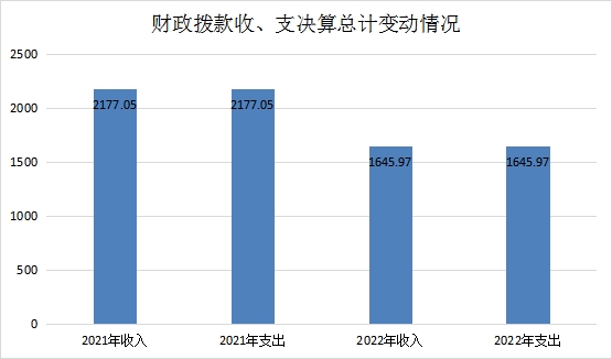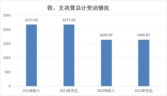 2022年度收、支总计1645.97万元。与2021年相比,收、支总计各减少531.08万元,减少24.39%。主要变动原因是财政拨款减少。