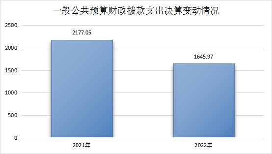 2022年一般公共预算财政拨款支出1645.97万元,占本年支出合计的100%。与2021年相比,一般公共预算财政拨款支出减少531.08万元,减少24.39%。主要变动原因是财政拨款减少。