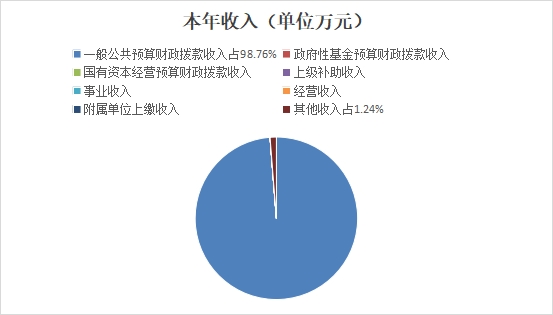 2022年本年收入合计399.35万元,其中:一般公共预算财政拨款收入394.38万元,占98.76%;政府性基金预算财政拨款收入0万元,占0%;国有资本经营预算财政拨款收入0万元,占0%;上级补助收入0万元,占0%;事业收入0万元,占0%;经营收入0万元,占0%;附属单位上缴收入0万元,占0%;其他收入4.97万元,占1.24%。
