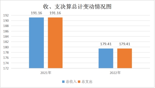 2022年度收入179.41万元,支出179.41万元。与2021年相比,收入减少11.75万元,下降6.15%,主要减少原因是事业收入减少;支出减少11.75万元,下降6.15%。主要变动原因是新冠疫情防控相关支出减少。