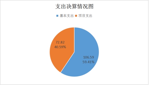 2022年本年支出合计179.41万元,其中:基本支出106.59万元,占59.41%;项目支出72.82万元,占40.59%;上缴上级支出0万元,占0%;经营支出0万元,占0%;对附属单位补助支出0万元,占0%。