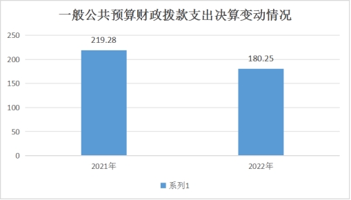2022年一般公共预算财政拨款支出180.25万元,占本年支出合计的67.61%。与2021年相比,一般公共预算财政拨款支出减少39.03万元,下降17.80%。主要变动原因是新冠疫情防控支出费用减少。