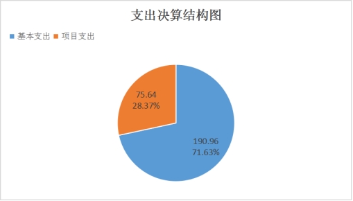 2022年本年支出合计266.59万元,其中:基本支出190.96万元,占71.63%;项目支出75.64万元,占28.37%;上缴上级支出0万元,占0%;经营支出0万元,占0%;对附属单位补助支出0万元,占0%。