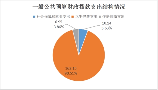 2022年一般公共预算财政拨款支出180.25万元,主要用于以下方面:一般公共服务(类)支出0万元,占0%;教育支出(类)0万元,占0%;科学技术(类)支出0万元,占0%;文化旅游体育与传媒(类)支出0万元,占0%;社会保障和就业(类)支出10.14万元,占5.63%;卫生健康支出163.15万元,占90.51%;住房保障支出6.9万元,占3.86%。