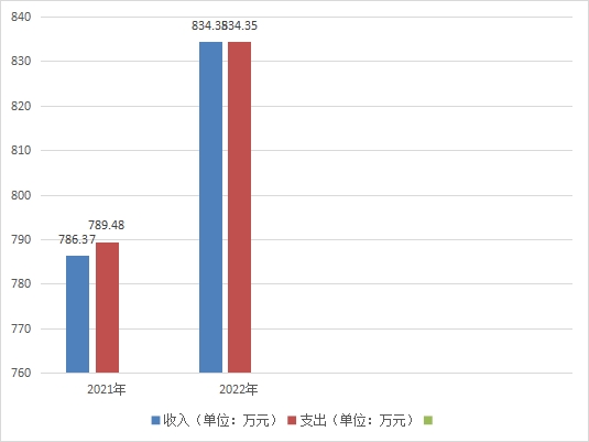 2022年财政拨款收、支总计834.35万元。与2021年相比,财政拨款收入增加47.98万元,增长6.1%;财政拨款支出增加44.87万元,增长5.68%。主要变动原因是财政预算人员经费增加;公共卫生服务经费增加。如图4: