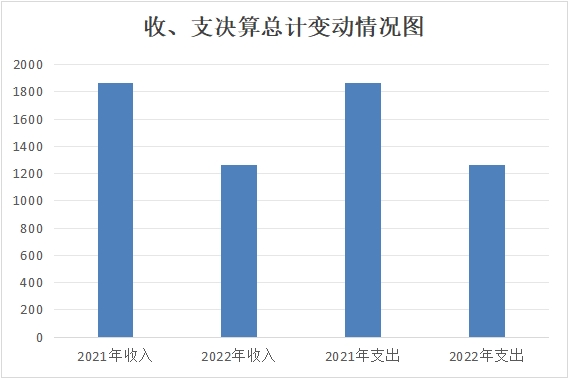 2022年度收、支总计1259.88万元。与2021年相比,收、支总计各减少605.61万元,下降32.46%。主要变动原因是教职工人数减少及学校校园环境的改善和学校校园文化的建设投入减少。