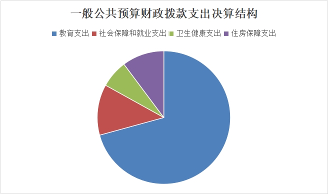 2022年一般公共预算财政拨款支出1259.88万元,主要用于以下方面:一般公共服务(类)支出0万元,占0%;教育支出(类)891.24万元,占70.74%;科学技术(类)支出0万元,占0%;文化旅游体育与传媒(类)支出0万元,占0%;社会保障和就业(类)支出155.14万元,占12.31%;卫生健康支出84.77万元,占6.73%;住房保障支出128.72万元,占10.22%。