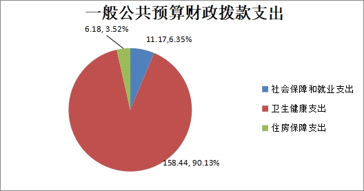 2022年一般公共预算财政拨款支出175.79万元,主要用于以下方面:社会保障和就业(类)支出11.17万元,占6.35%;卫生健康支出158.44万元,占90.13%;住房保障支出6.18万元,占3.52%。