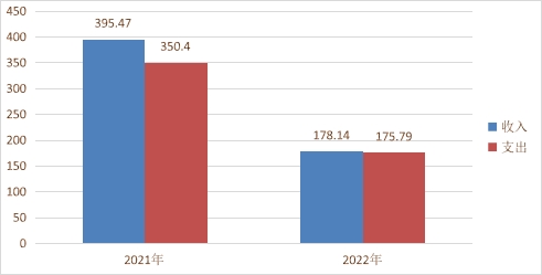2022年度收入178.14万元、支出总计175.79万元。与2021年相比,收入减少217.33万元,下降54.95%。主要变动原因是单位合并到仁寿县二医院未开展业务,事业收入减少。支出175.79万元,与2021年相比支出减少174.61万元,下降49.83 %,主要变动原因是单位合并,基本支出和项目支出减少。