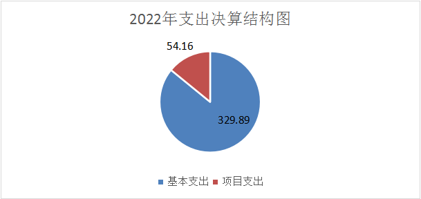 2022年本年支出合计384.06万元,其中:基本支出329.89万元,占85.90%;项目支出54.16万元,占14.1%;上缴上级支出0万元,占0%;经营支出0万元,占0%;对附属单位补助支出0万元,占0%。