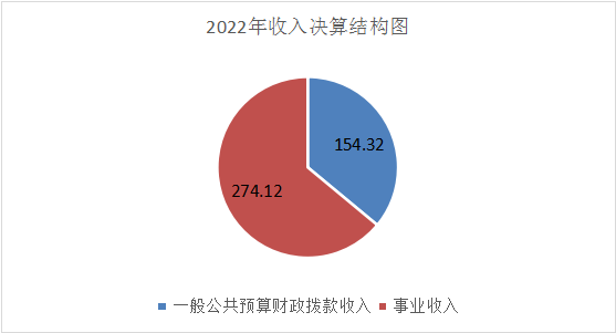 2022年本年收入合计428.44万元,其中:一般公共预算财政拨款收入154.32万元,占36.02%;政府性基金预算财政拨款收入0万元,占0%;上级补助收入0万元,占0%;事业收入274.12万元,占63.98%;经营收入0万元,占0%;附属单位上缴收入0万元,占0%;其他收入0万元,占0%。