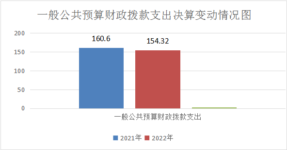 2022年一般公共预算财政拨款支出154.32万元,占本年支出合计的40.18%。与2021年相比,一般公共预算财政拨款支出减少6.28万元,下降3.9%。主要变动原因是人员经费变动。