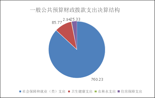 2023年一般公共预算财政拨款支出874.28万元,主要用于以下方面:一般公共服务(类)支出0万元,占0%;教育支出(类)0万元,占0%;科学技术(类)支出0万元,占0%;文化旅游体育与传媒(类)支出0万元,占0%;社会保障和就业(类)支出760.23万元,占86.95%;卫生健康支出85.77万元,占9.81%;农林水支2.94万元,占0.34%;住房保障支出25.33万元,占2.9%。