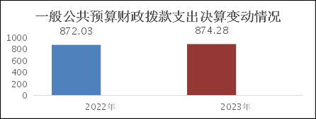 2023年一般公共预算支出决算数为874.28,完成预算100%。其中:
