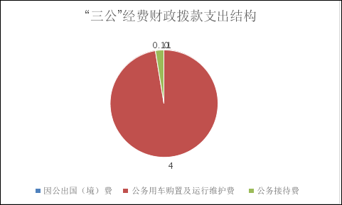 2023年“三公”经费财政拨款支出决算中,因公出国(境)费支出决算0万元,占0%;公务用车购置及运行维护费支出决算4万元,占97.32%;公务接待费支出决算0.11万元,占2.68%。具体情况如下: