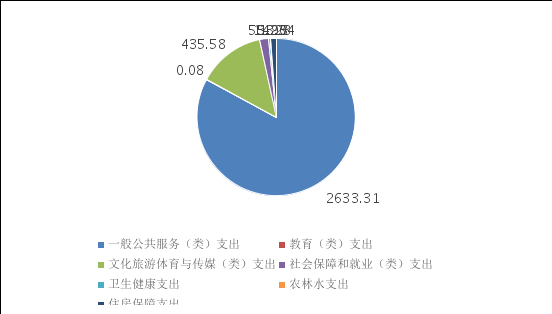 2023年一般公共预算财政拨款支出3173.41万元,主要用于以下方面:一般公共服务(类)支出2633.31万元,占82.98%;教育(类)支出0.08万元,占0.003%;文化旅游体育与传媒(类)支出435.58万元,占13.73%;社会保障和就业(类)支出55.23万元,占1.74%;卫生健康支出14.23万元,占0.45%;农林水支出1.93万元,占0.06%;住房保障支出33.04万元,占1.04%。